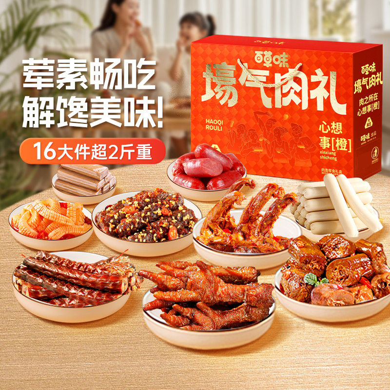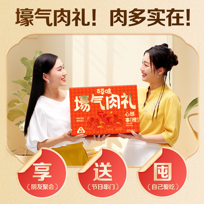 百草味礼包1233g全肉礼盒鸿运肉肉礼盒解馋零食大礼包送礼节日 - 百草味官方旗舰店