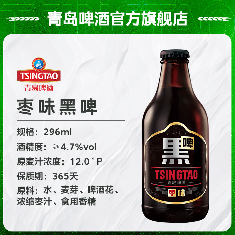 青岛啤酒枣味黑啤296ml*8瓶精酿啤酒 焦香浓郁 - 青岛啤酒官方旗舰店