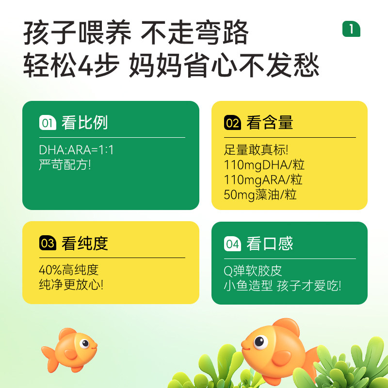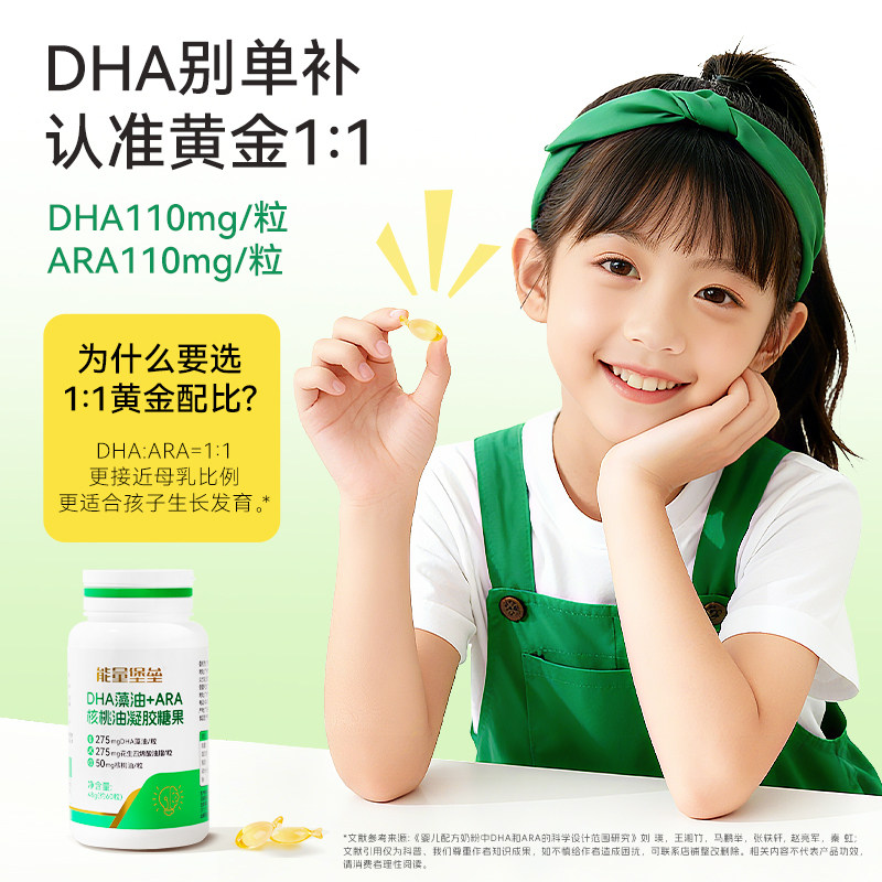 DHA藻油凝胶糖果双专利ARA核桃油儿童学生青少年孕妇60粒W - 能量堡垒保健食品旗舰店