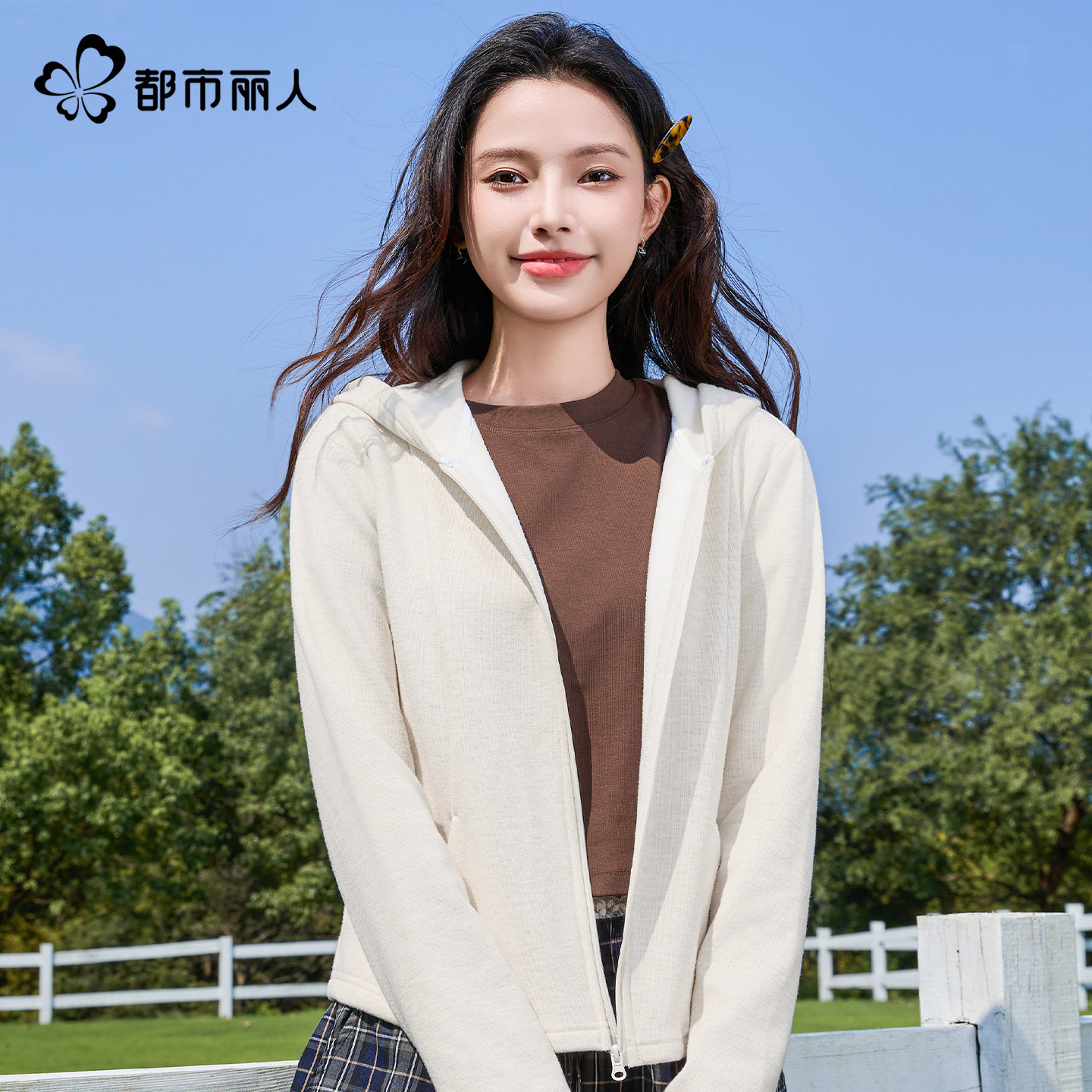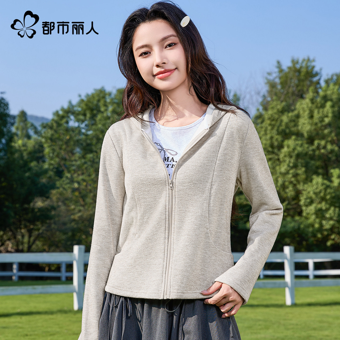 都市丽人加绒糯米外套女2026新款秋冬巨好看小个子修身卫衣开衫X - 都市丽人女装旗舰店