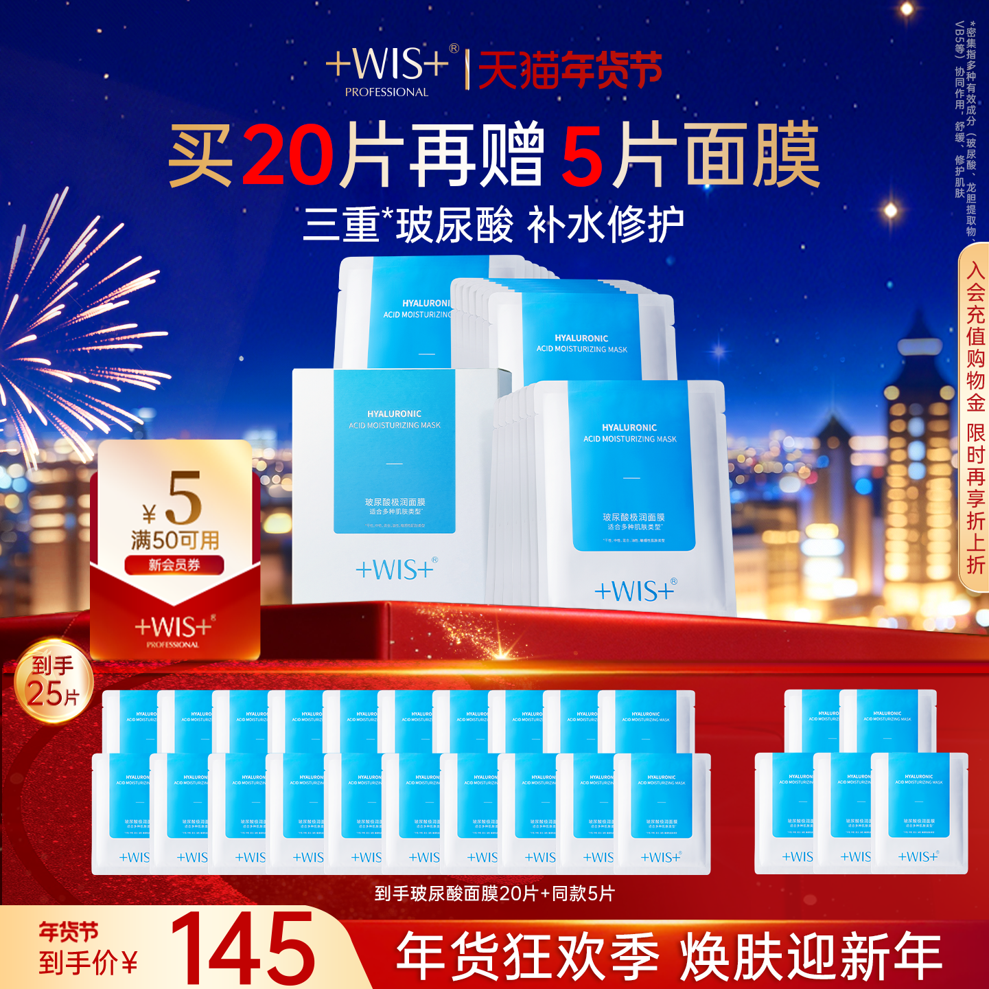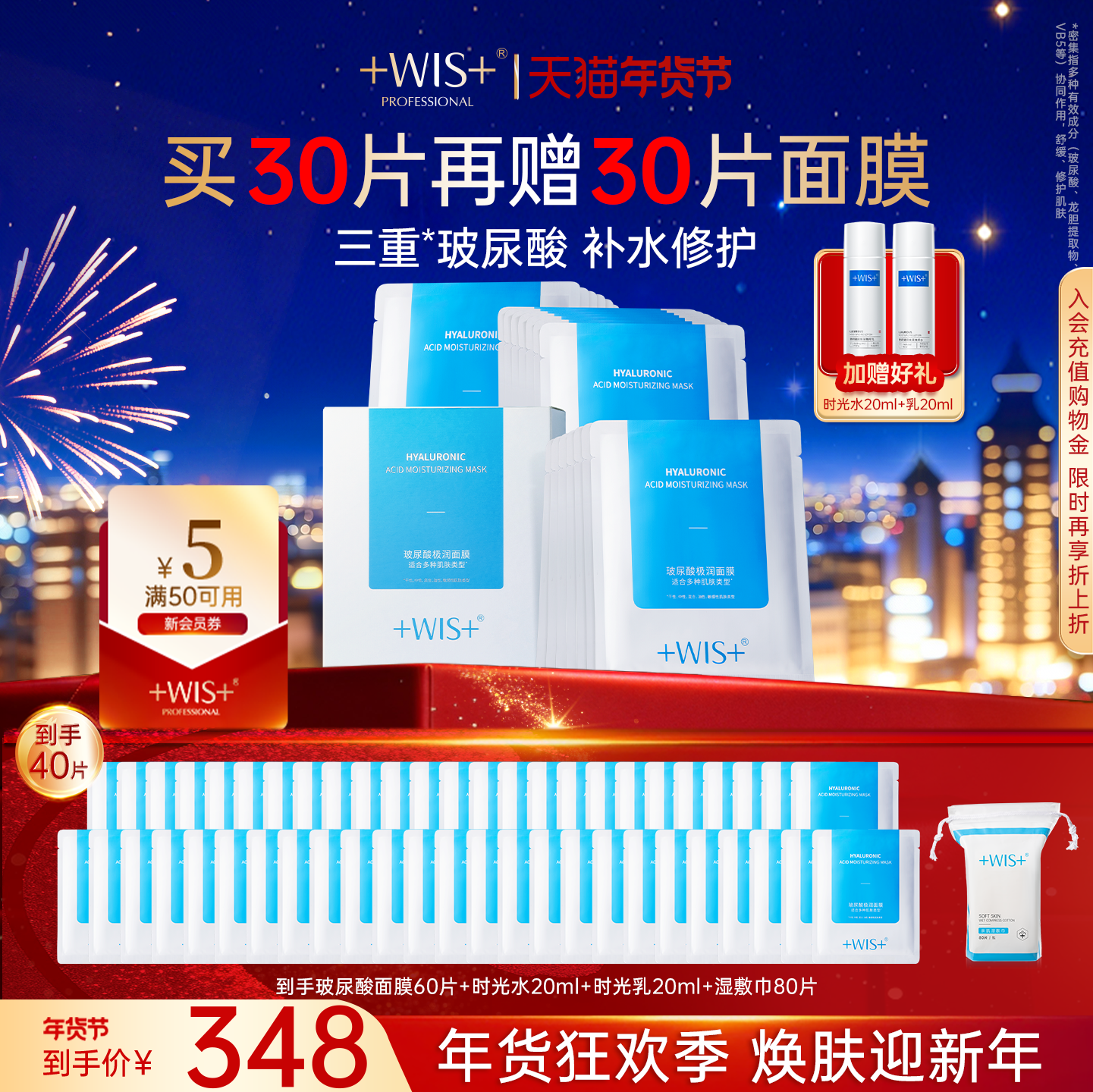 WIS玻尿酸极润面膜2.0升级三重补水保湿敏感肌熬夜护肤 官方正品 - WIS旗舰店