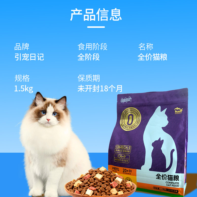 引宠日记全价猫粮3斤装幼猫成猫营养通用营养高蛋白小猫咪猫粮 - 引宠日记旗舰店