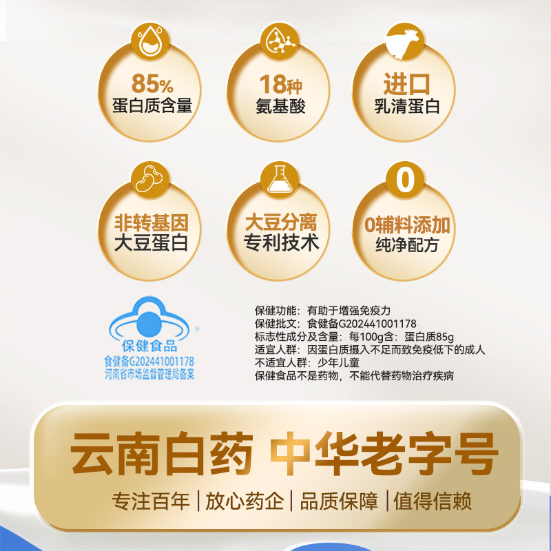 云南白药蛋白粉500g乳清蛋白大豆双蛋白成人中老年增强免疫力正品 - 阿里健康大药房