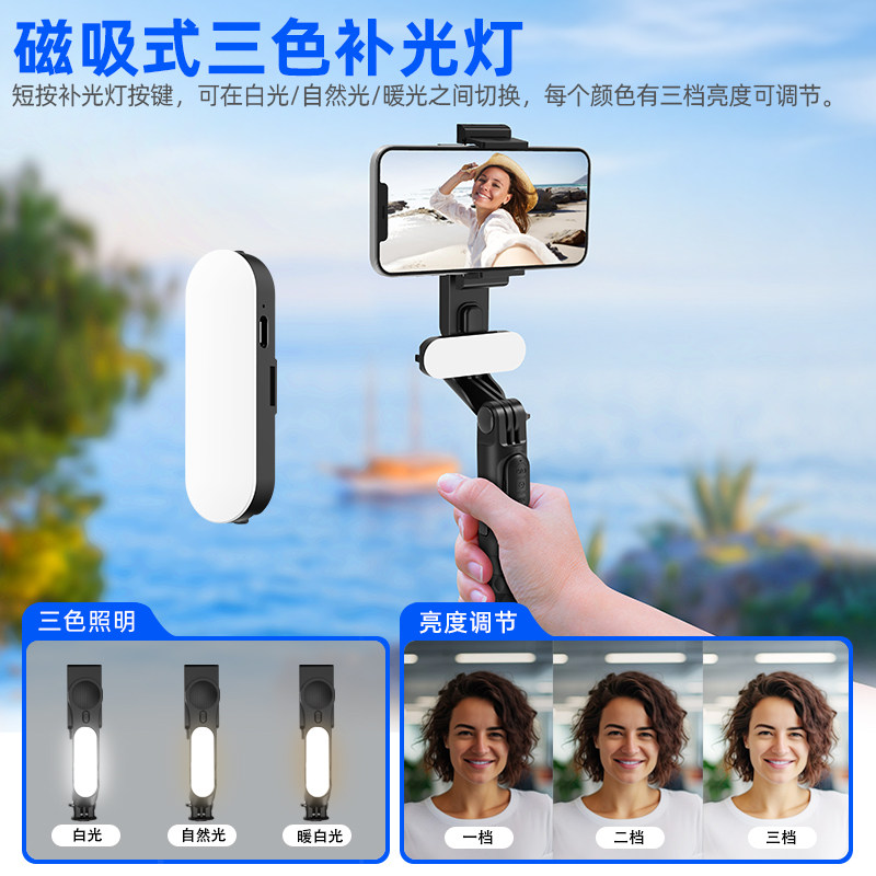 MOERTEK A6手机自拍杆智能跟拍稳定器防抖云台360度旋转户外直播vlog视频拍摄专用设备旅游自拍杆带补光灯 - Moertek旗舰店