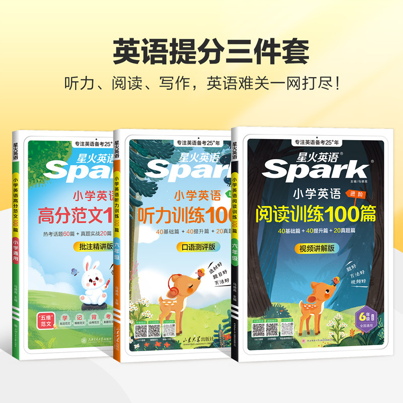 星火英语小学英语听力专项训练100篇小学生一二年级三四年级五六年级上下一册英语听力天天练口语测评外教朗读听力训练题人教译林 - 星火图书旗舰店