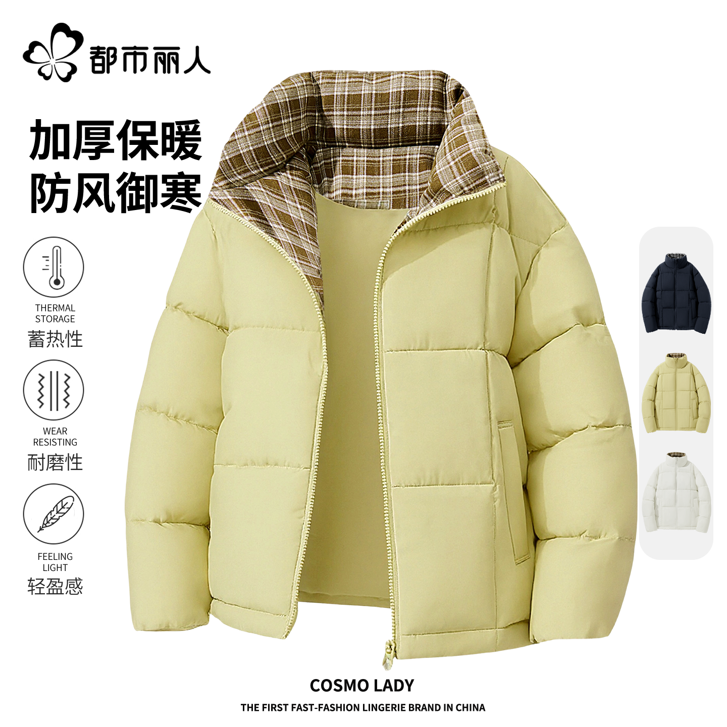 都市丽人藏青色棉服女2026新款加绒加厚面包服巨好看的冬装外套X - 都市丽人女装旗舰店