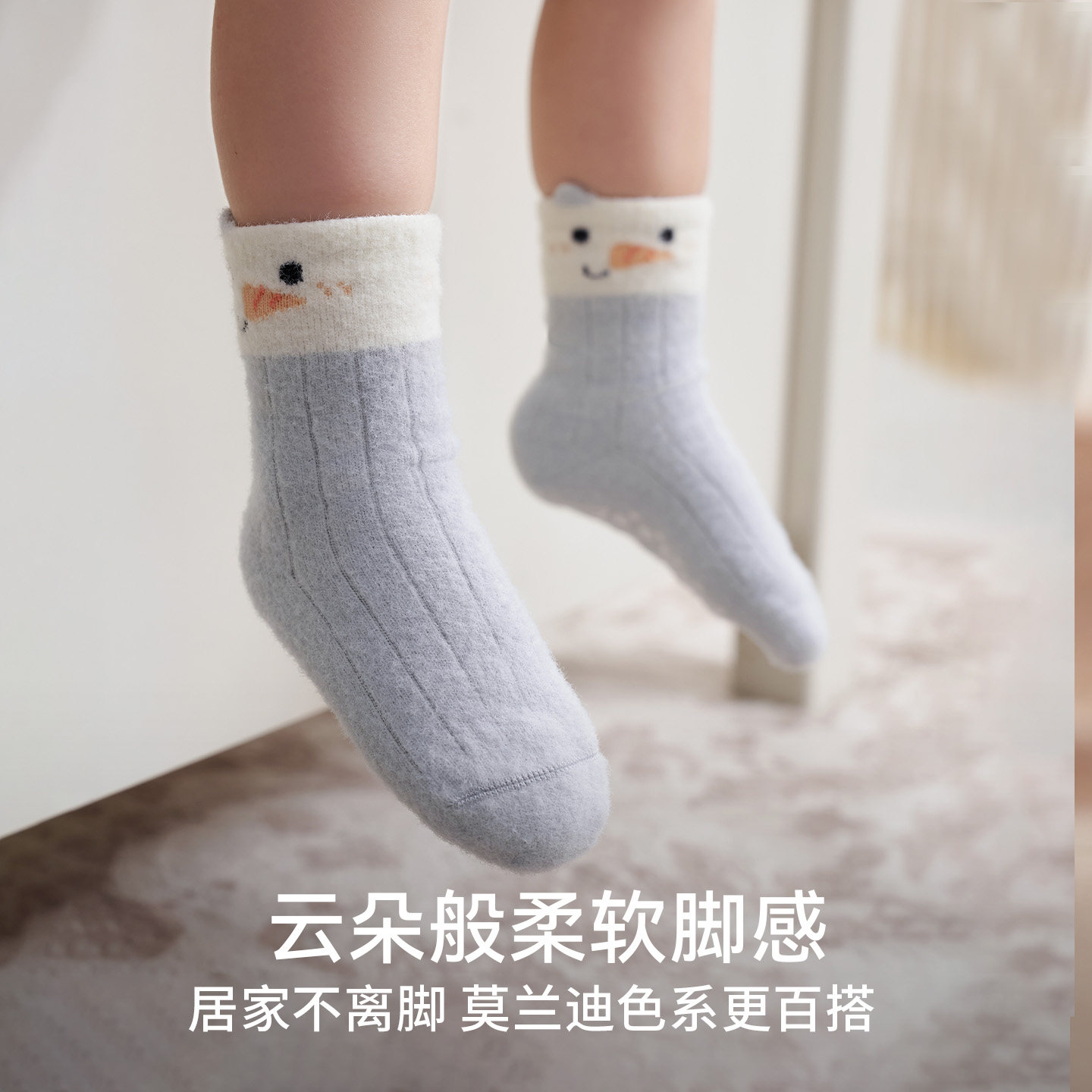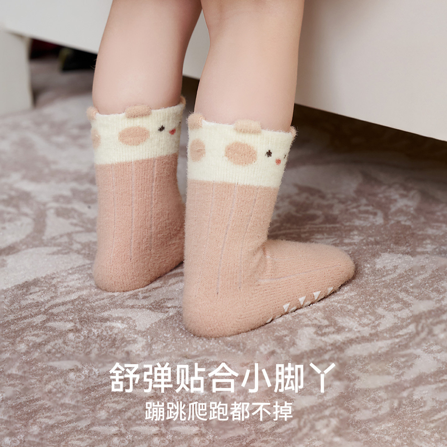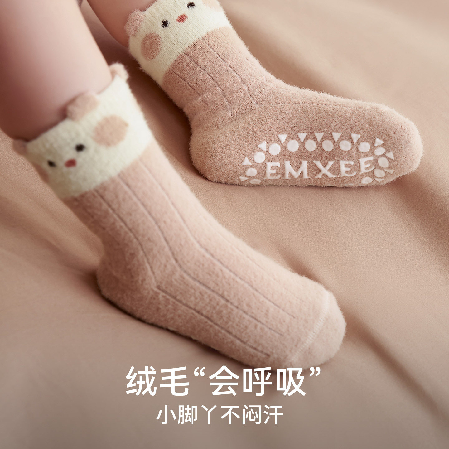 嫚熙儿童袜子秋冬款双面绒地板袜防滑学步袜男女童小月龄宝宝中筒 - EMXEE嫚熙官方旗舰店