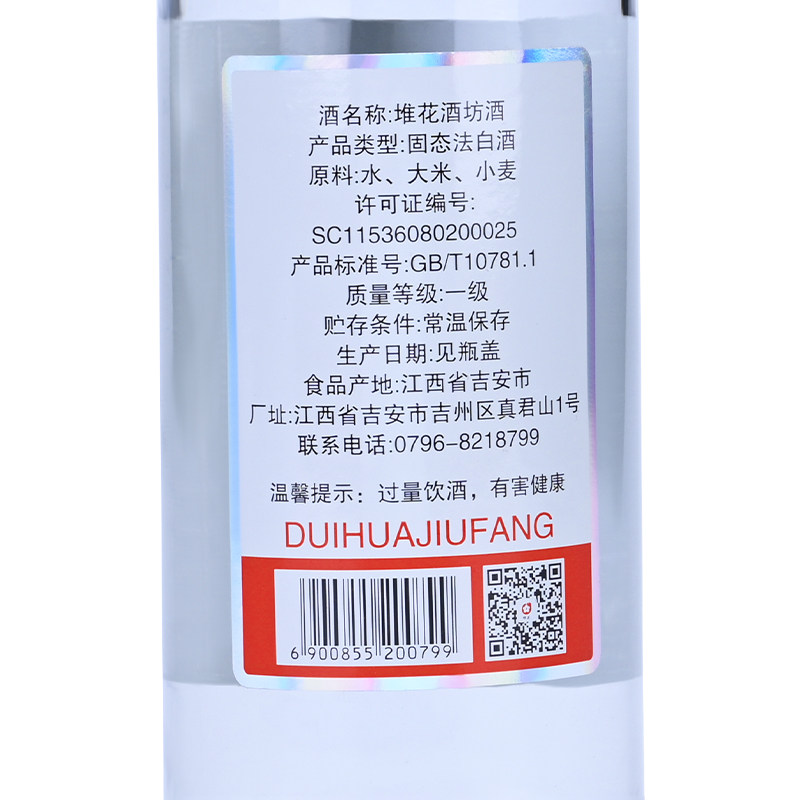官方旗舰店 江西堆花酒坊52度浓香型白酒纯粮食酒光瓶500ml*12瓶 - 堆花旗舰店