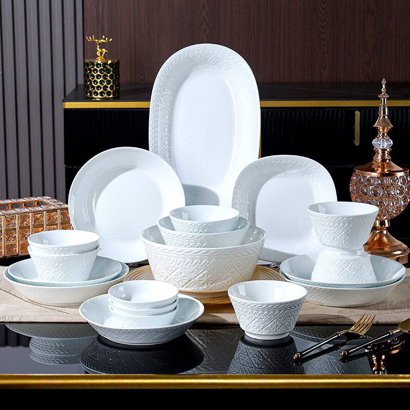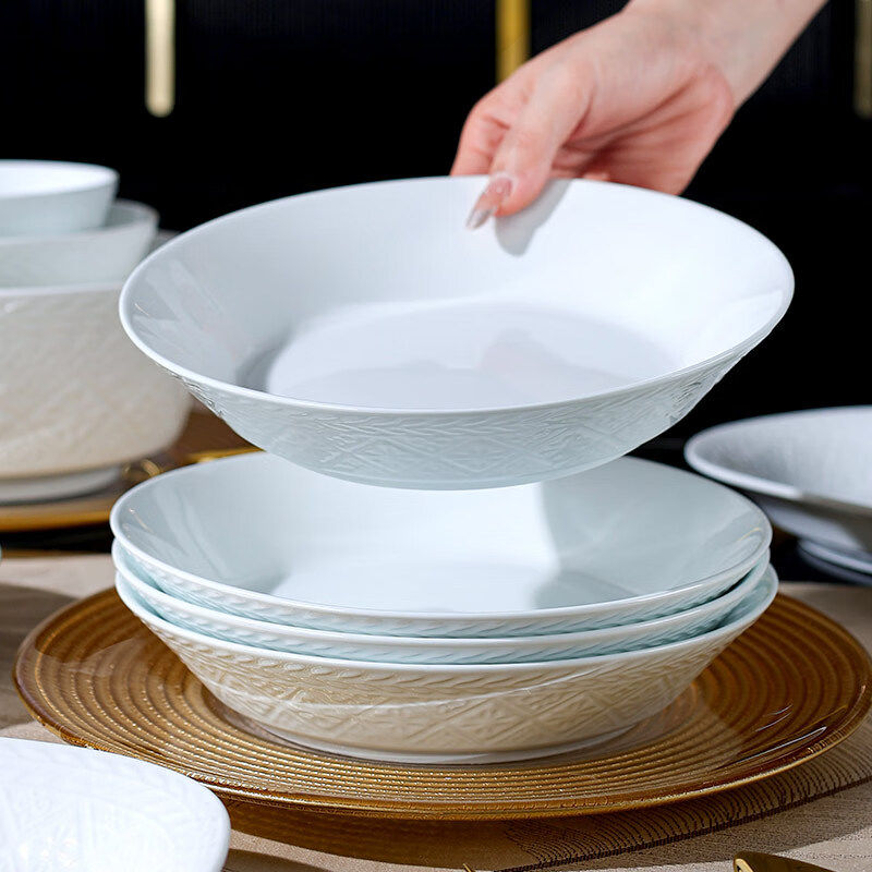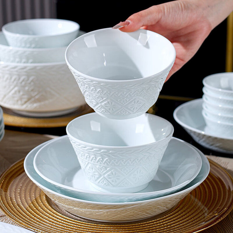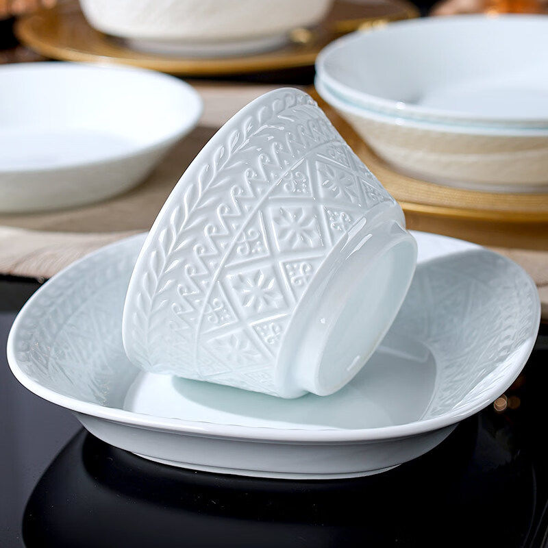 您的位置:优特荟  >   >  传旗】碗盘餐具整套新款青釉浮雕4人8人份餐具碗具套装高端礼盒装
