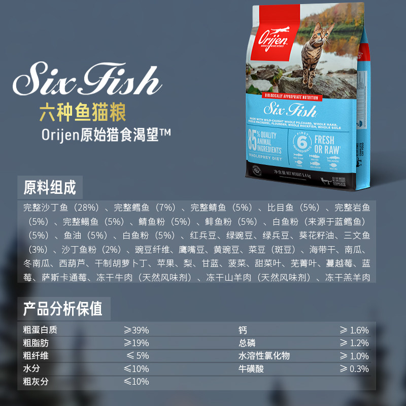 您的位置:优特荟  >   >  【臻选】Orijen原始猎食渴望猫粮六种鱼成猫幼猫鱼肉猫粮5.4kg