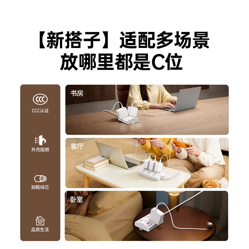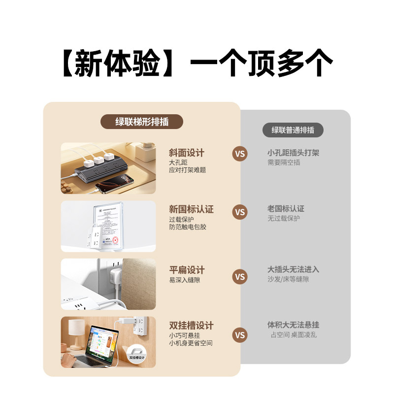 绿联T6梯形排插插座插板接线板大间距多功能桌面usb充电多孔插排 - 绿联数码旗舰店