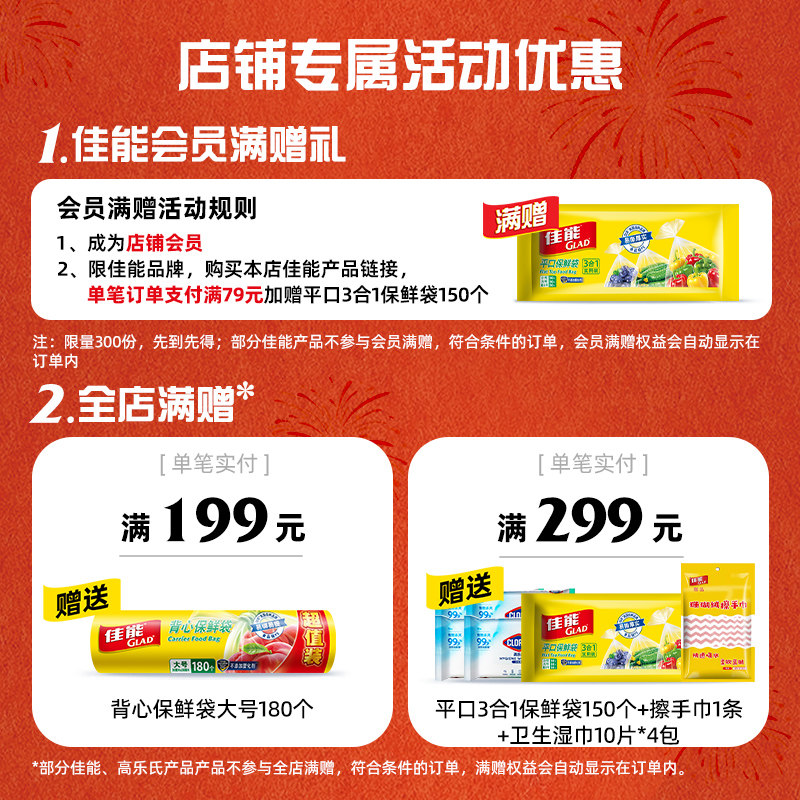 佳能食品保鲜袋平口背心家用塑料袋双重加厚厨房冰箱收纳袋 - 高乐氏旗舰店