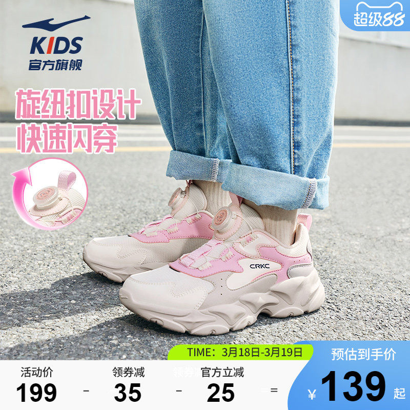 衍界4|鸿星尔克童鞋女童休闲鞋春季粉色鞋子新款轻便儿童运动鞋 - 鸿星尔克童装旗舰店