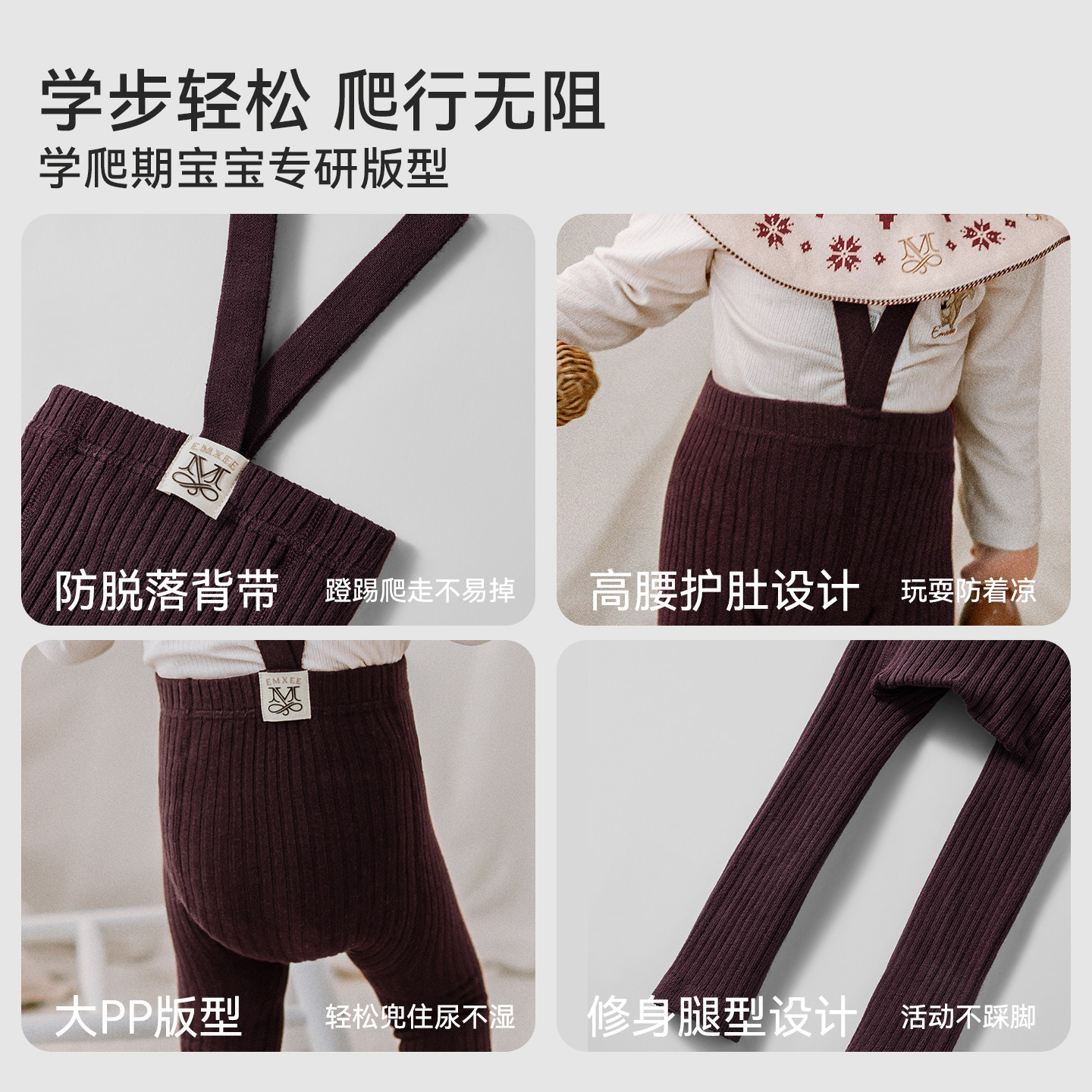 嫚熙童装打底裤儿童托举裤男女宝背带裤婴儿包屁裤秋季毛线针织裤 - EMXEE嫚熙官方旗舰店