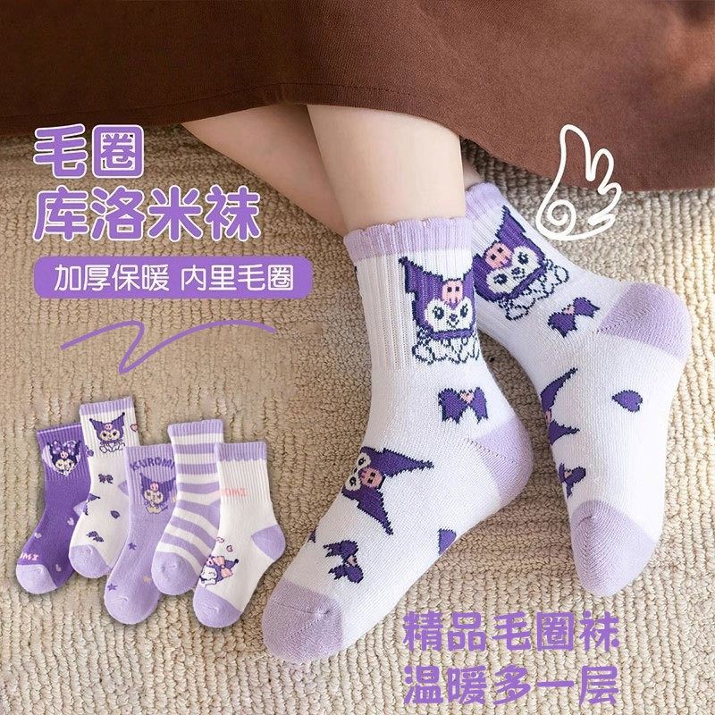 【爆款】儿童袜子加厚女童秋冬季韩版毛圈中筒男女宝加绒袜库洛米 - 柒彩虹内衣袜子