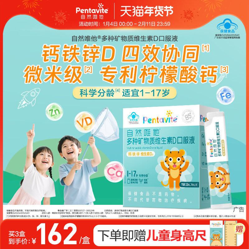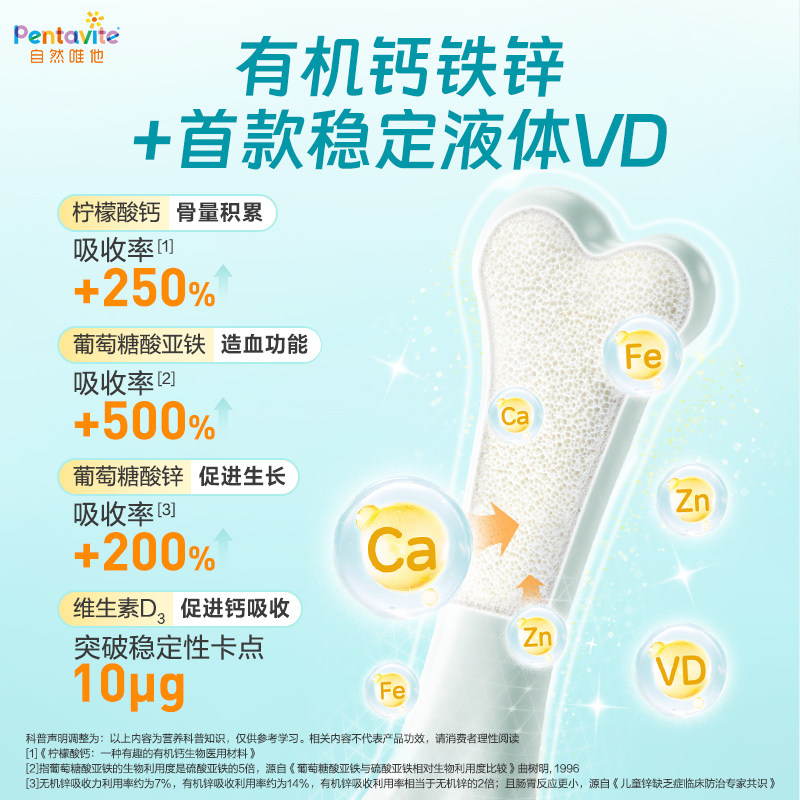 Pentavite自然唯他钙铁锌口服液儿童液体钙柠檬酸钙6-12岁以上 - pentavite旗舰店