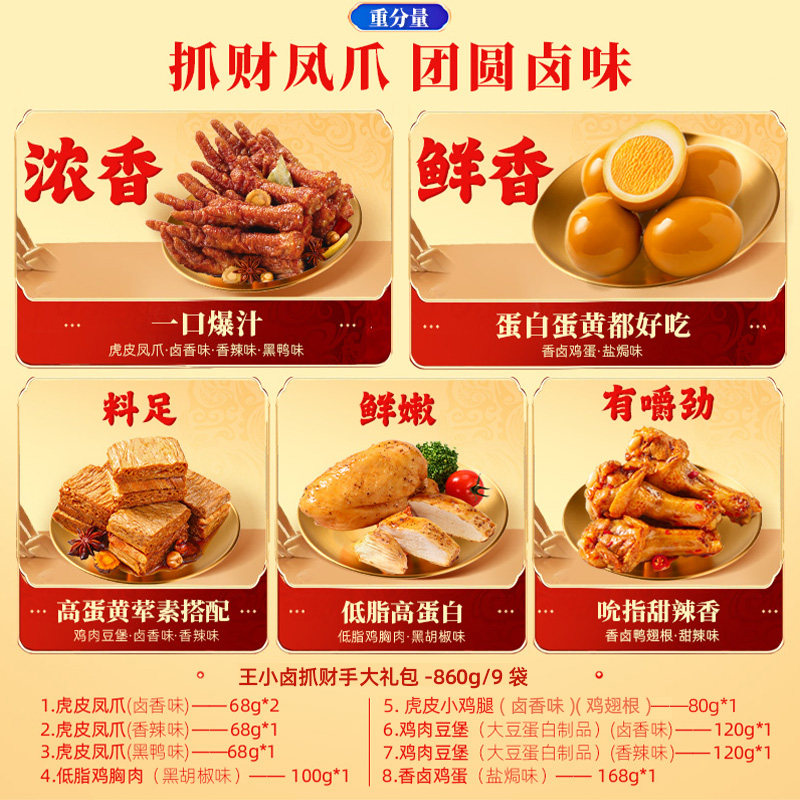 王小卤新年礼盒鸡爪卤味零食大礼包送人年货解馋虎皮凤爪团购福利 - 王小卤旗舰店