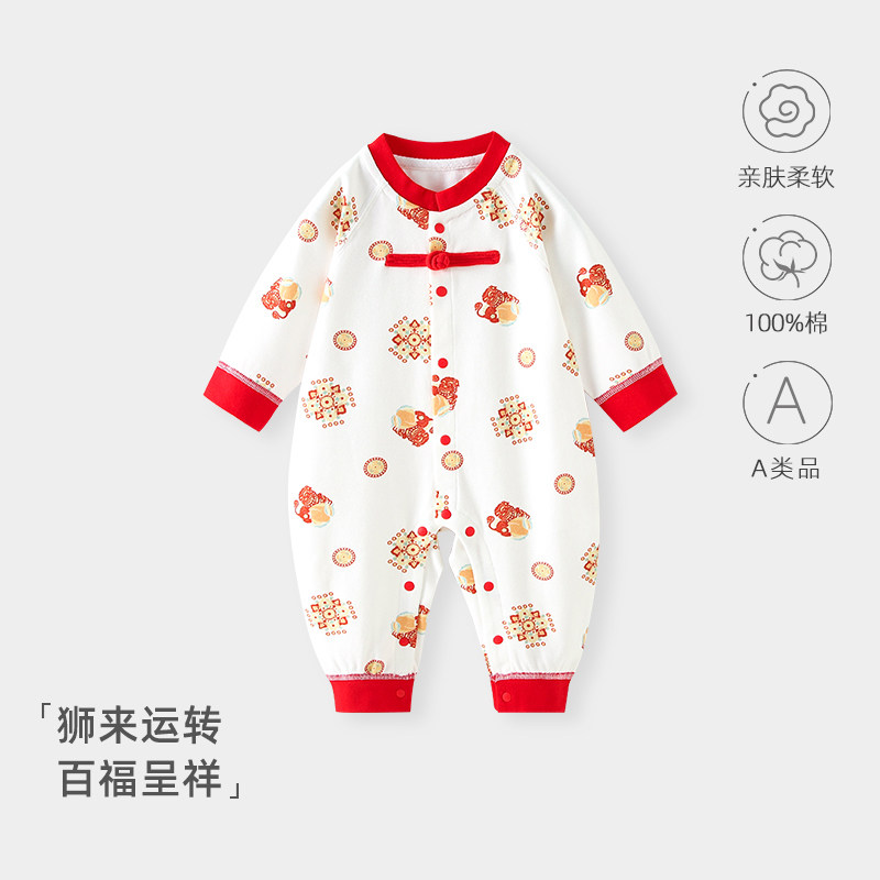 新生儿纯棉单排扣连体衣男女通用A类中式连身哈衣可开档爬服喜庆 - 小鸣童装专营店