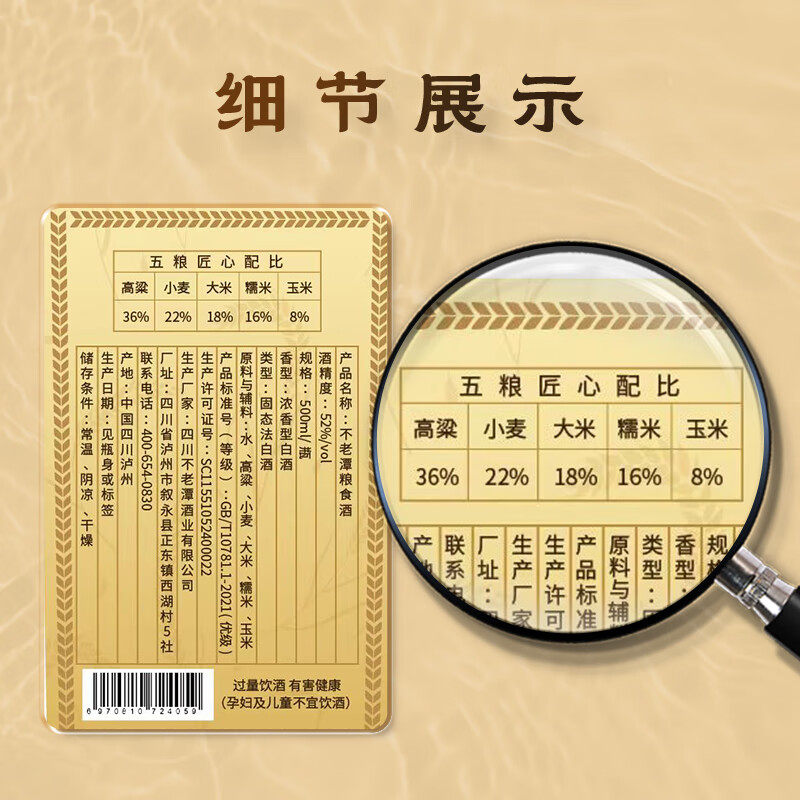 不老潭浓香型高度白酒纯粮食酒瓶装高粱酒四川泸州自饮口粮酒 - 不老坛酒类旗舰店