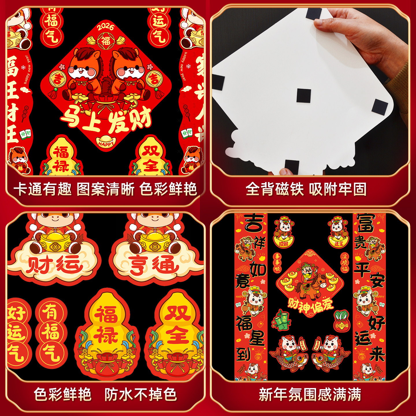 您的位置:优特荟  >   >  新款2026磁吸马年对联春联家用新年春节过年福字布置入户门贴装饰
