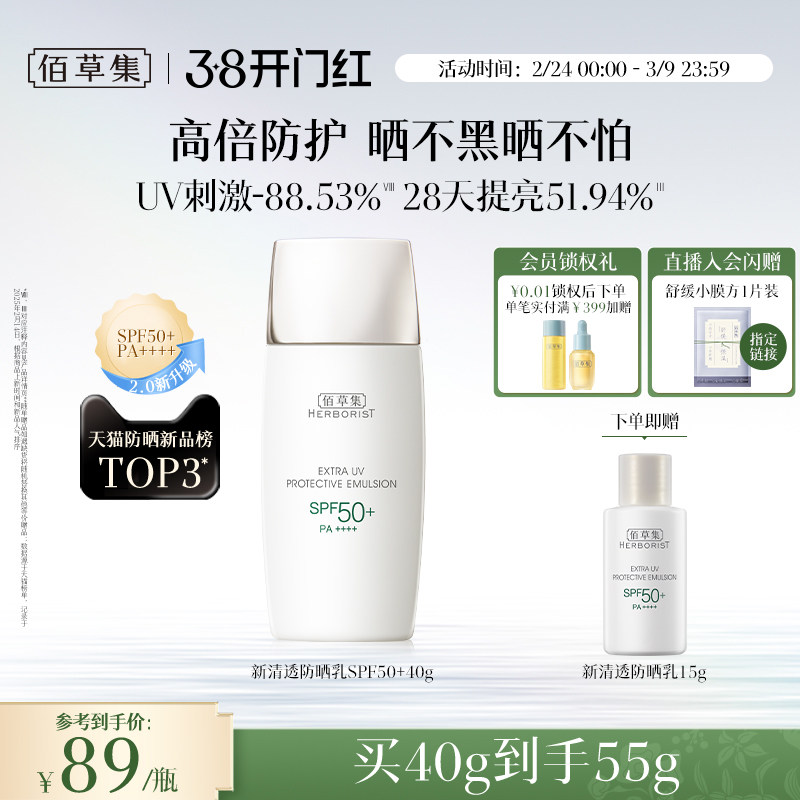 您的位置:优特荟  >   >  【升级2.0】佰草集清爽防晒乳户外防水隔离妆前乳高倍旅行防晒霜