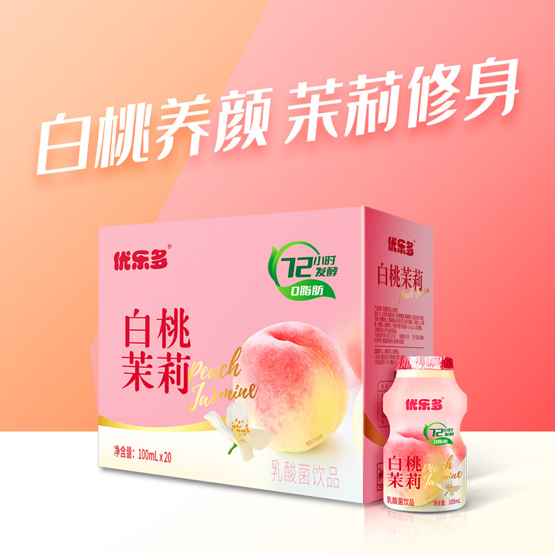 优乐多乳酸菌饮料白桃茉莉青提栀子健康饮品添加后生元100ml*20瓶 - 优乐多乳品官方旗舰店