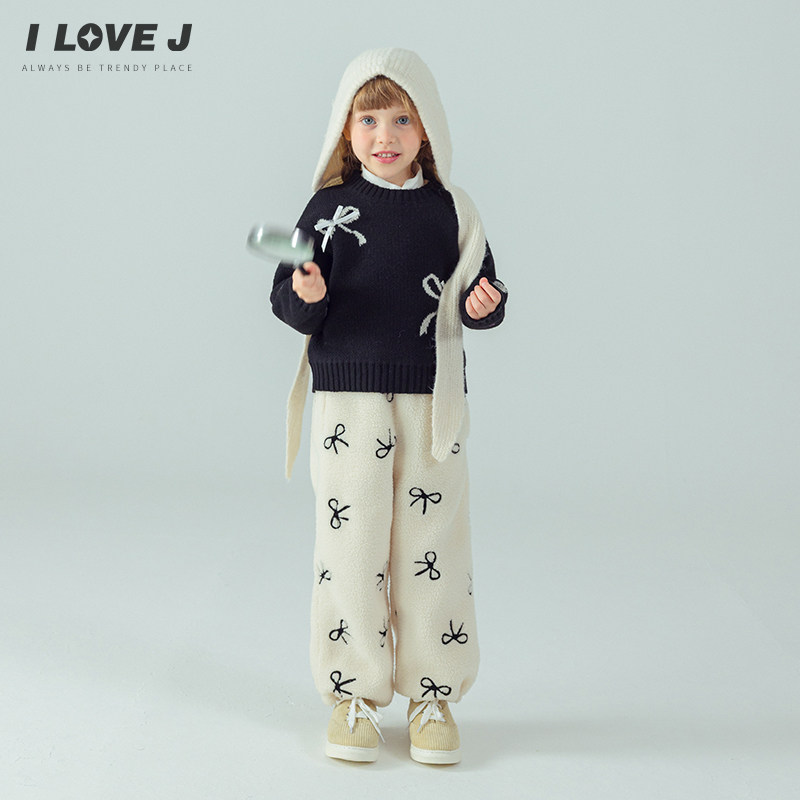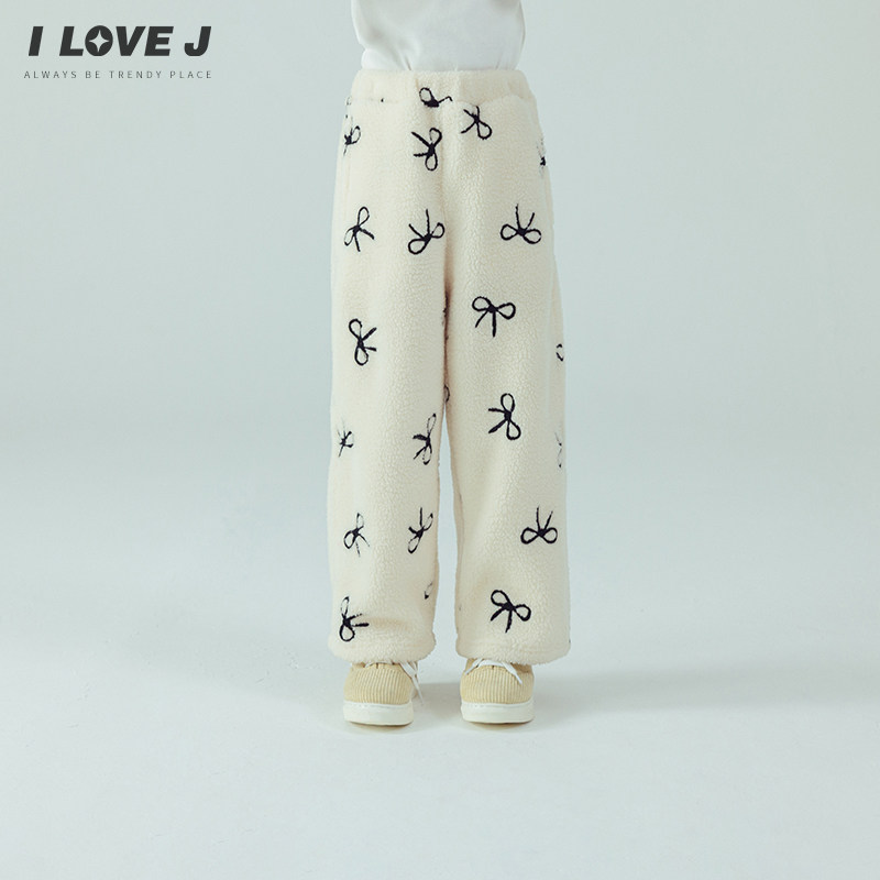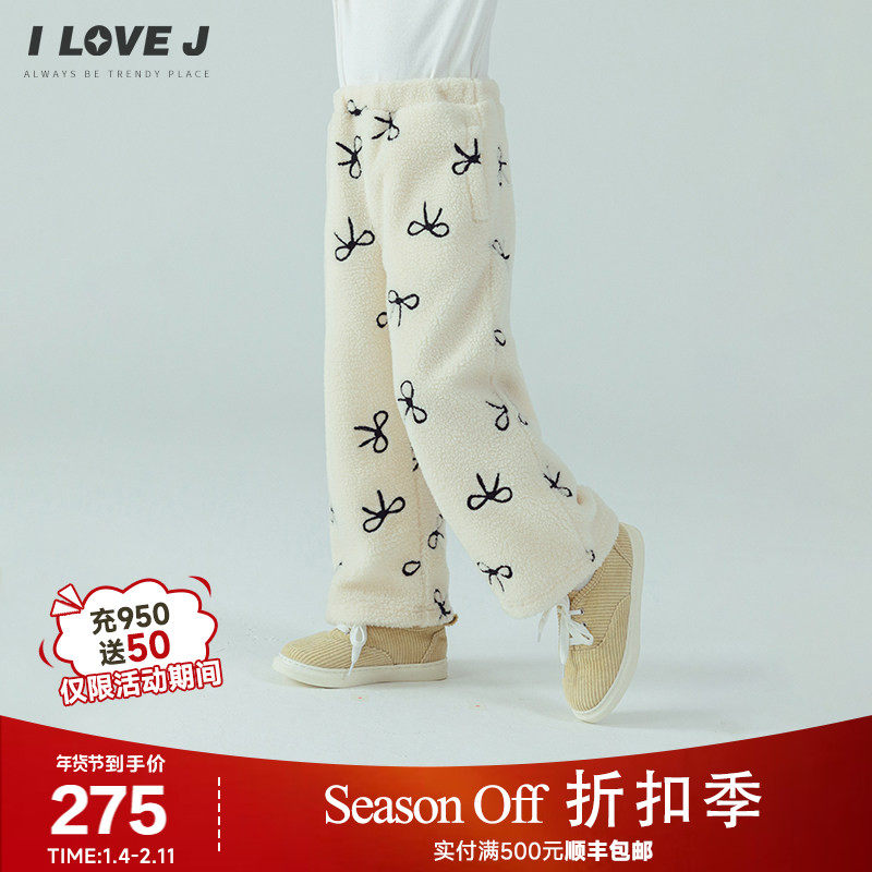 ILOVEJ韩国童装2025冬新款女童蝴蝶结摇粒绒裤子直筒宽松/JXWPT19 - ILOVEJ旗舰店