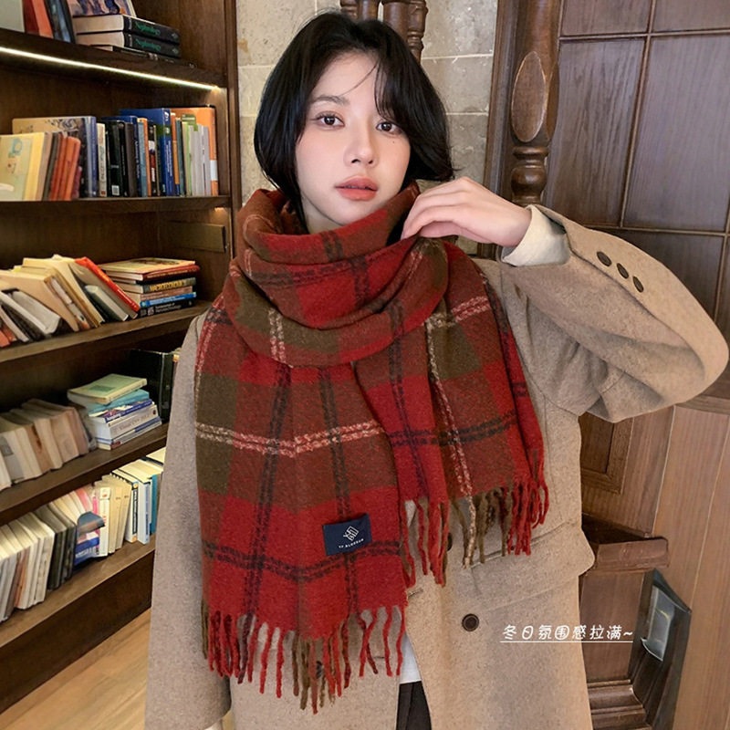DG新年圣诞礼物红色格子围巾女秋冬季保暖氛围感百搭学生情侣围脖 - La Chopelin女装