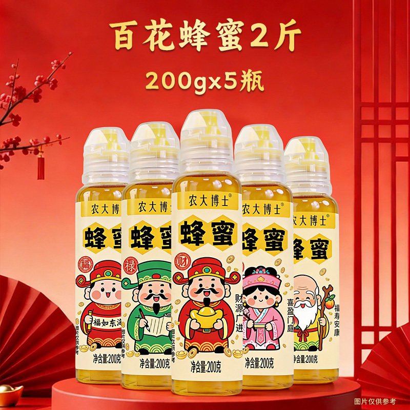 您的位置:优特荟  >   >  神蜂农大博士百花蜂蜜礼盒200g*5纯正野生天然挤压瓶送礼过年货