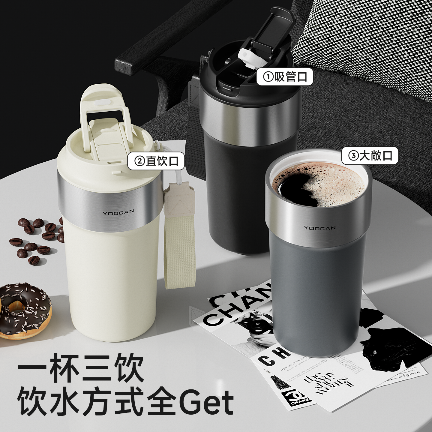 裕川兰心咖啡杯外出咖啡杯陶瓷覆层内胆保温杯男女不锈钢随行杯子 - 裕川旗舰店
