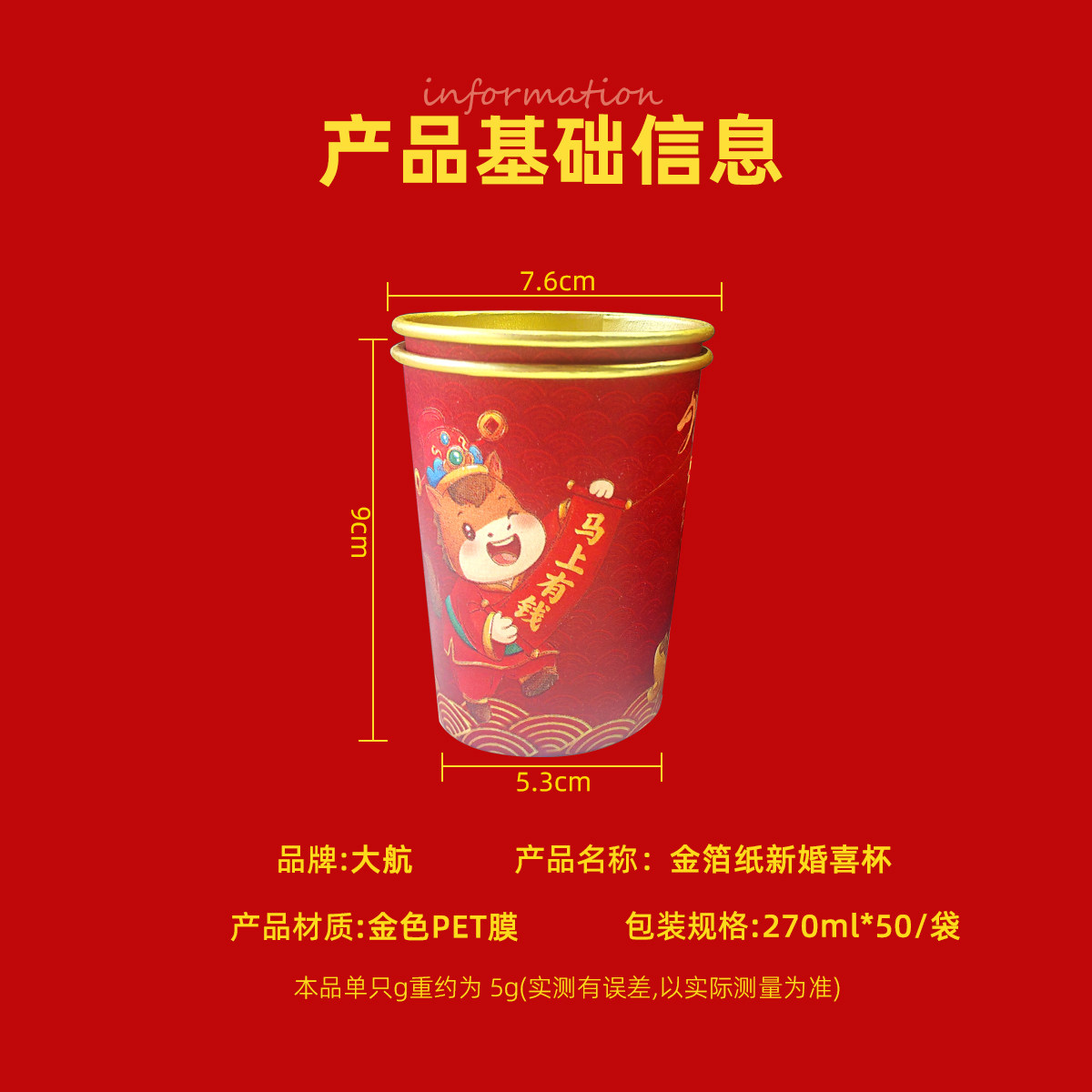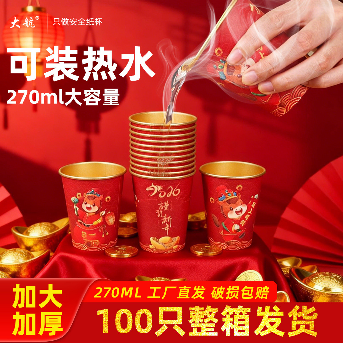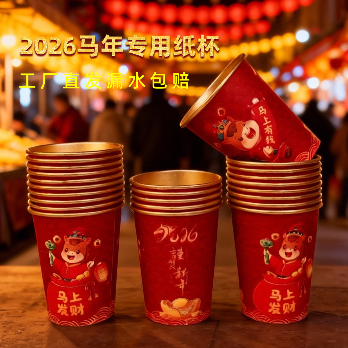 2026马年春节金箔纸杯家用加厚喜庆一次性新年过年货杯子红色水杯 - 大航旗舰店
