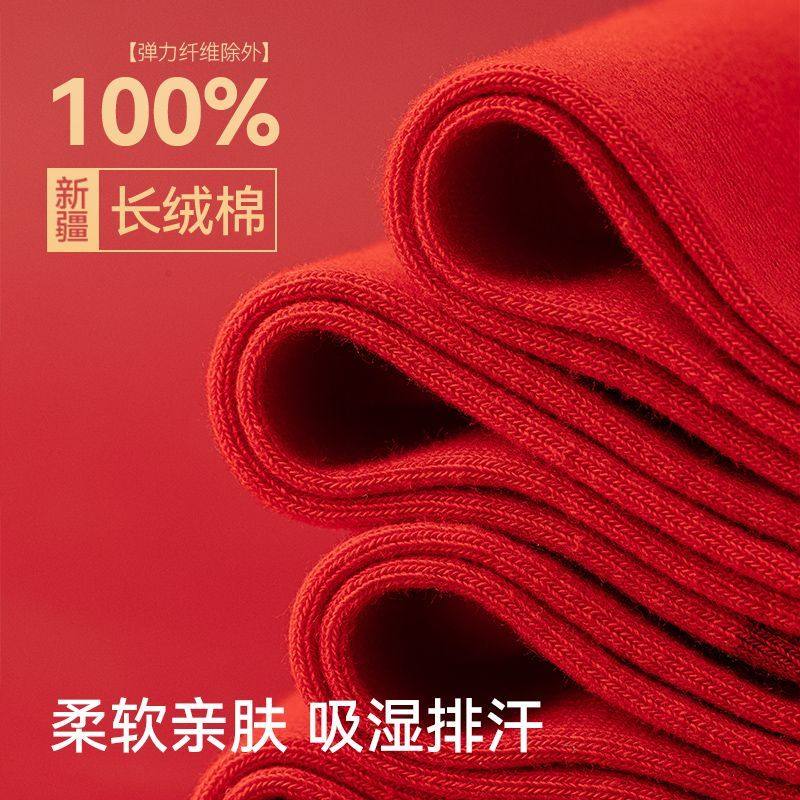 内茵本命年红色袜子情侣款马年保暖中筒袜礼盒5双新年礼物纯棉袜 - 内茵旗舰店