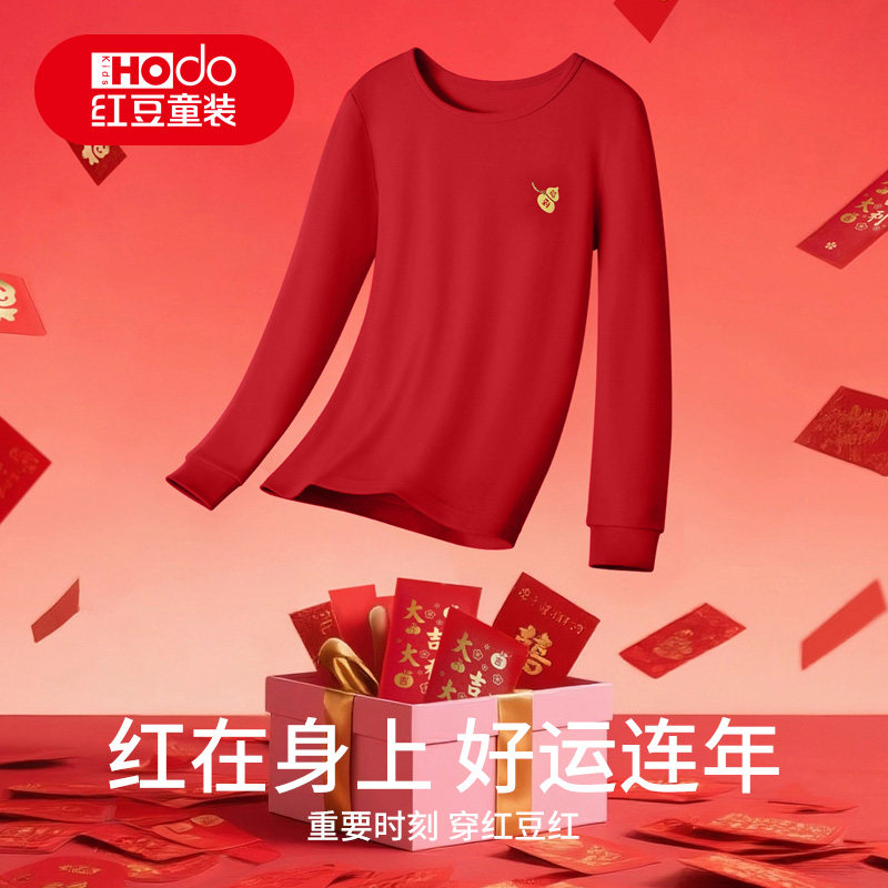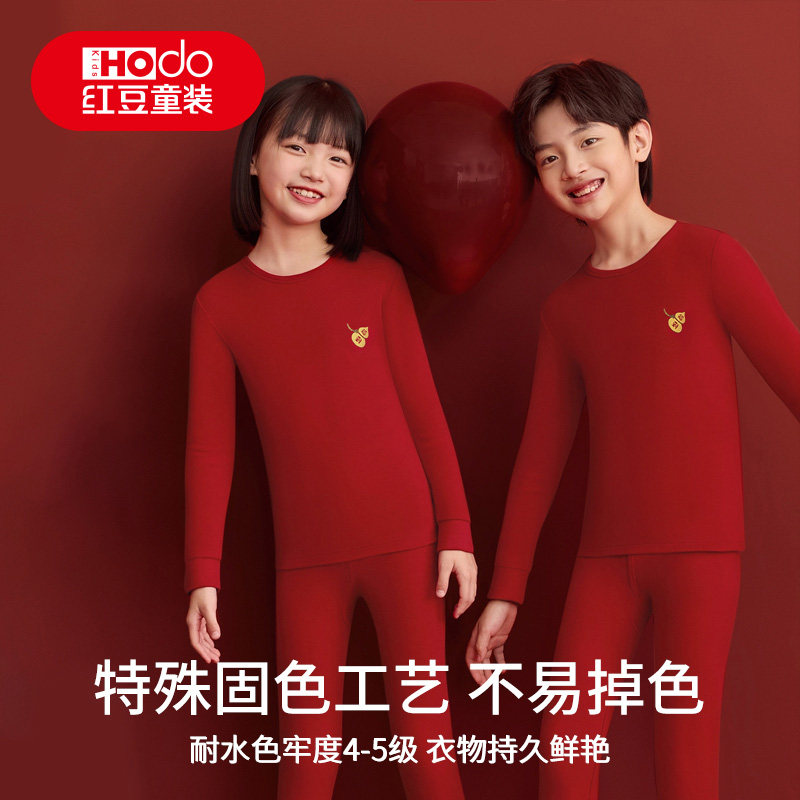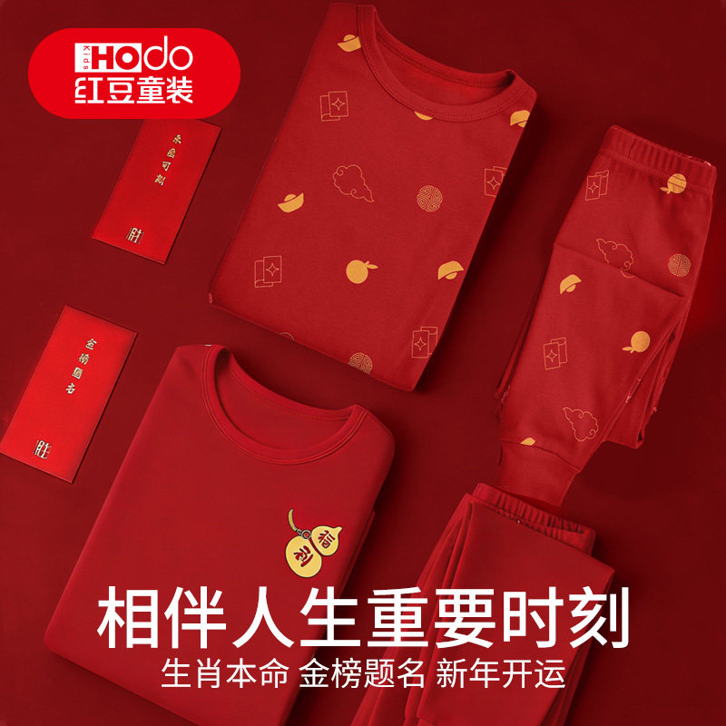 红豆儿童本命年保暖内衣套装纯棉7A抑菌男童女童红色马年秋衣秋裤 - 红豆行斯正专卖店