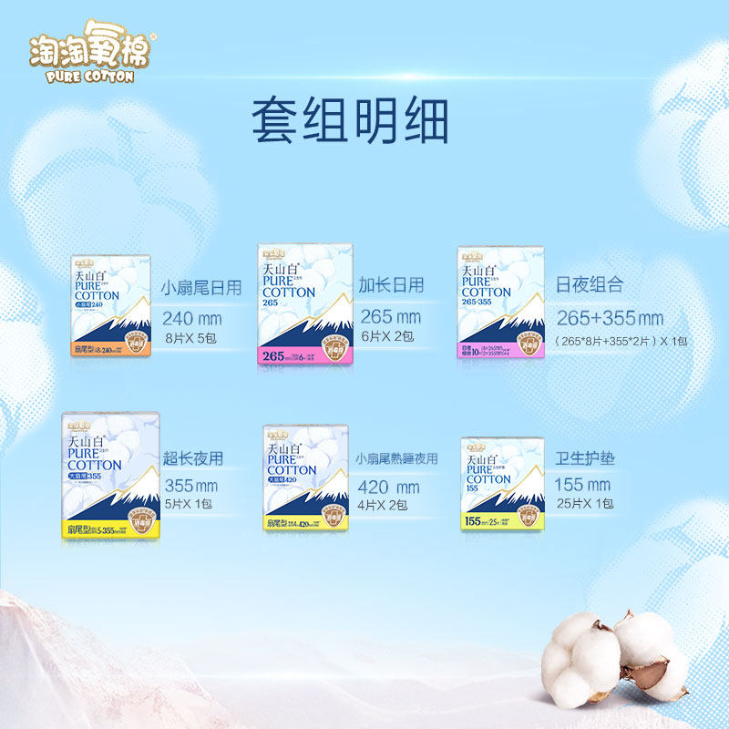 【超市臻选】淘淘氧棉天山白扇尾消毒级纯棉卫生巾日夜用囤货装 - 天猫超市