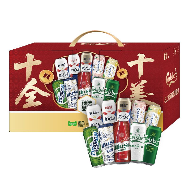 【臻选】礼盒1664啤酒十全十美礼盒500ml*10罐嘉士伯乌苏乐堡 - 天猫超市