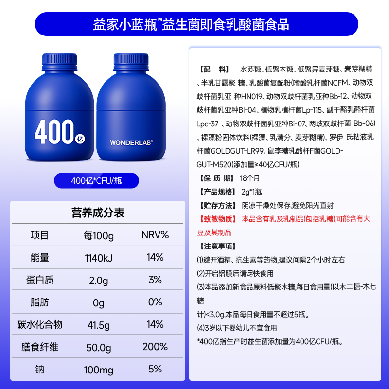 万益蓝WonderLab小蓝瓶益生菌400亿成人肠胃消化脾道虚弱益生元 - 天猫超市