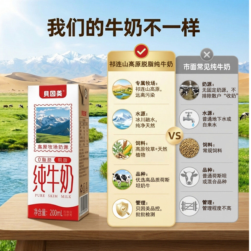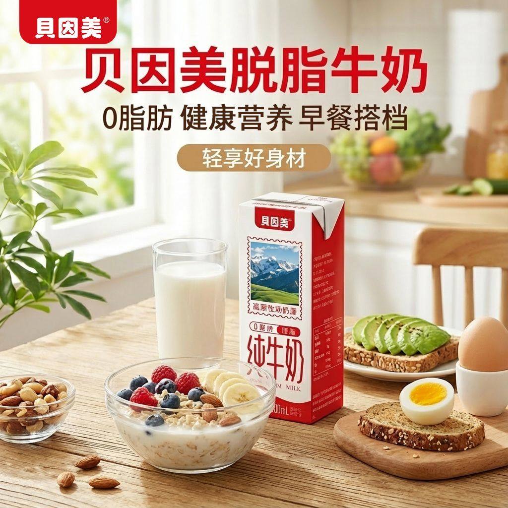 贝因美脱脂纯牛奶高原牛奶200ml*10盒*1提健康早餐0脂肪年货牛奶 - 贝因美牛奶旗舰店