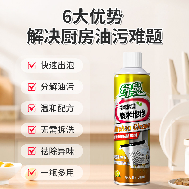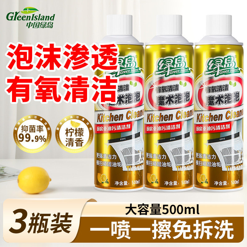 绿岛油污净厨房油烟机清洁剂高效强力去污神器清洗剂去重油污泡沫 - 绿岛旗舰店