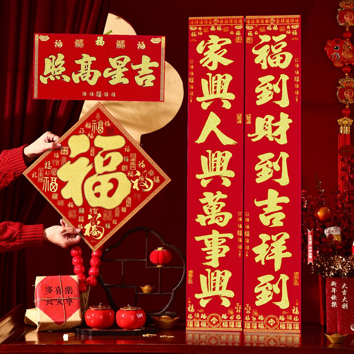 对联春联2026马年新款春节植绒新年装饰过年立体福字门贴大门自粘 - 御小元旗舰店