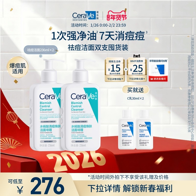 CeraVe适乐肤水杨酸洗面奶控油祛痘氨基酸洁面乳青少年官方正品 - CeraVe适乐肤官方旗舰店