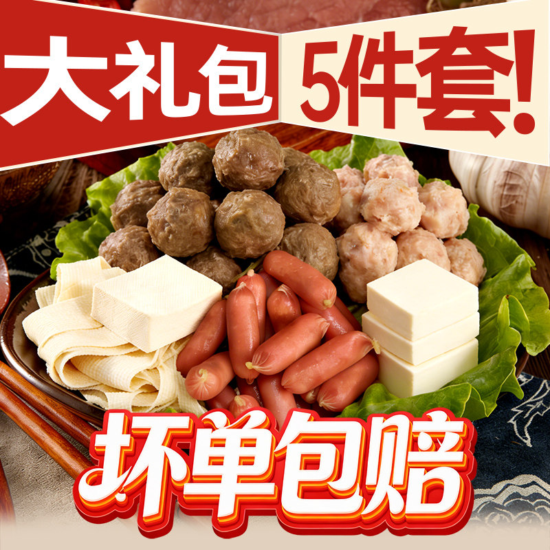 4斤火锅丸子组合装金锣火锅食材猪肉丸鸡肉丸撒尿肉丸香肠鱼豆腐 - 天合馨望餐饮食材企业店