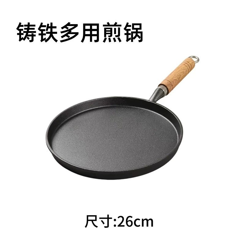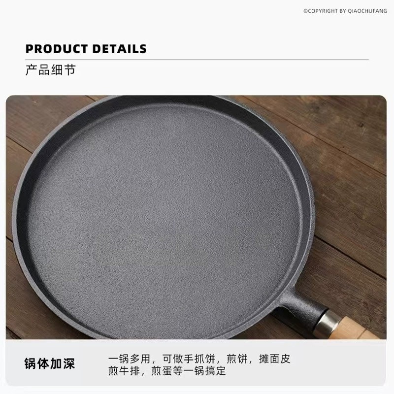 新款铸铁平底锅家用多功能烙饼手抓饼煎饼锅铁板炒锅鏊子生铁煎锅 - 立方几何