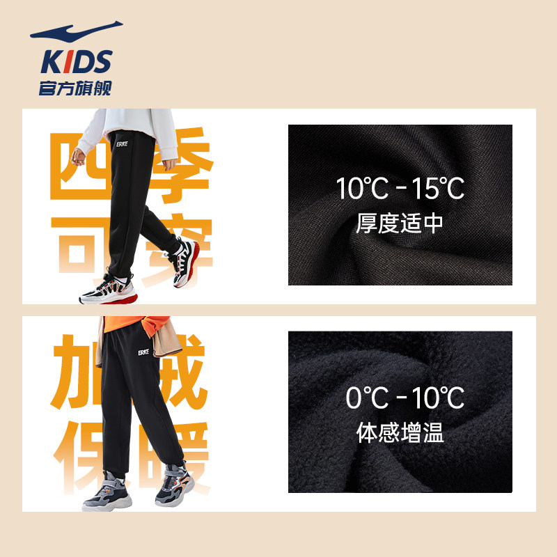 鸿星尔克童装男童卫裤儿童运动裤秋冬新款保暖长裤休闲裤加绒裤子 - 鸿星尔克童装旗舰店