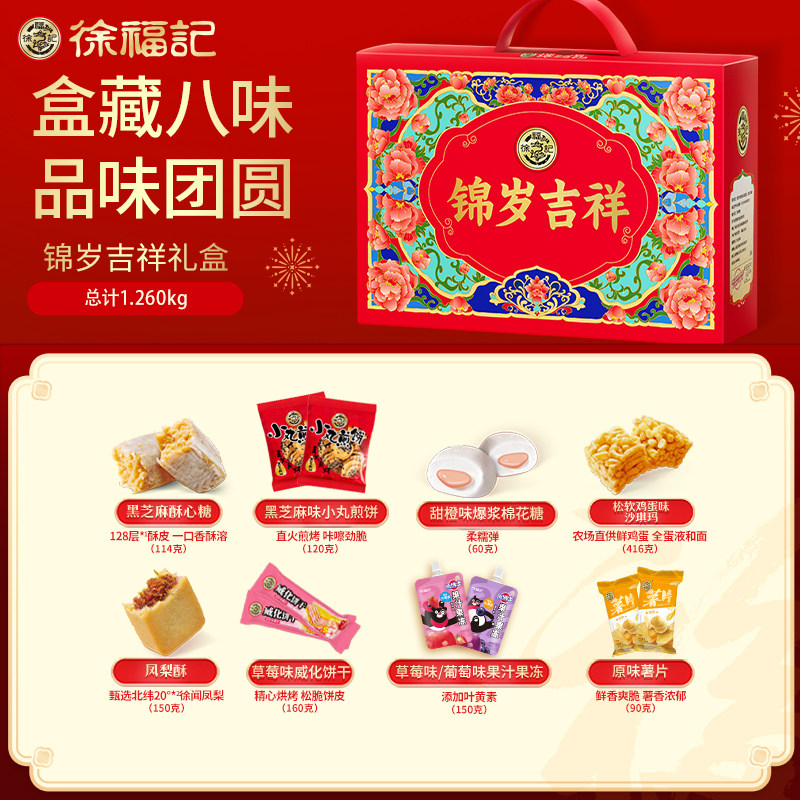 徐福记锦岁吉祥年糖沙琪玛礼盒1260g年货送礼小吃零食礼品 - 天猫超市
