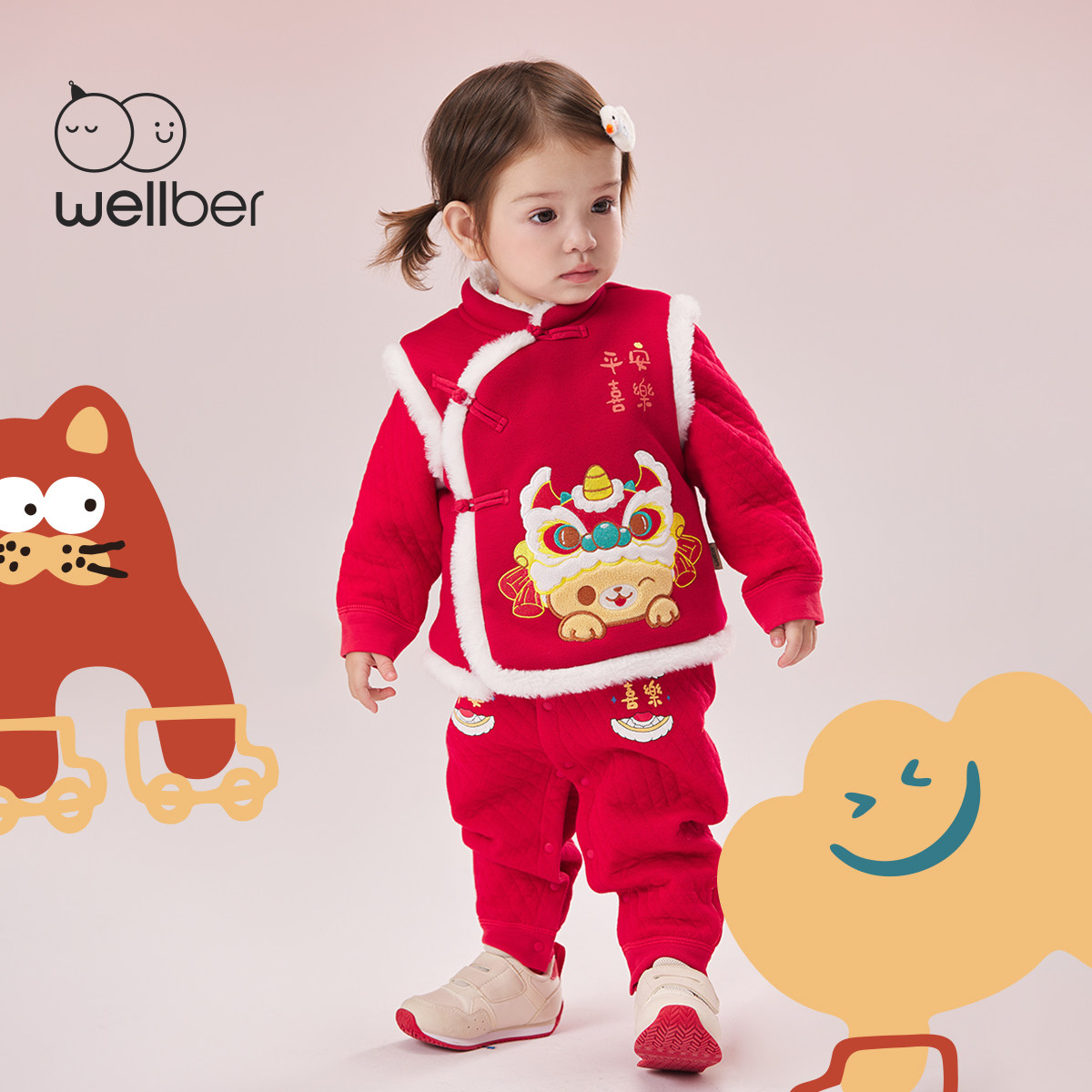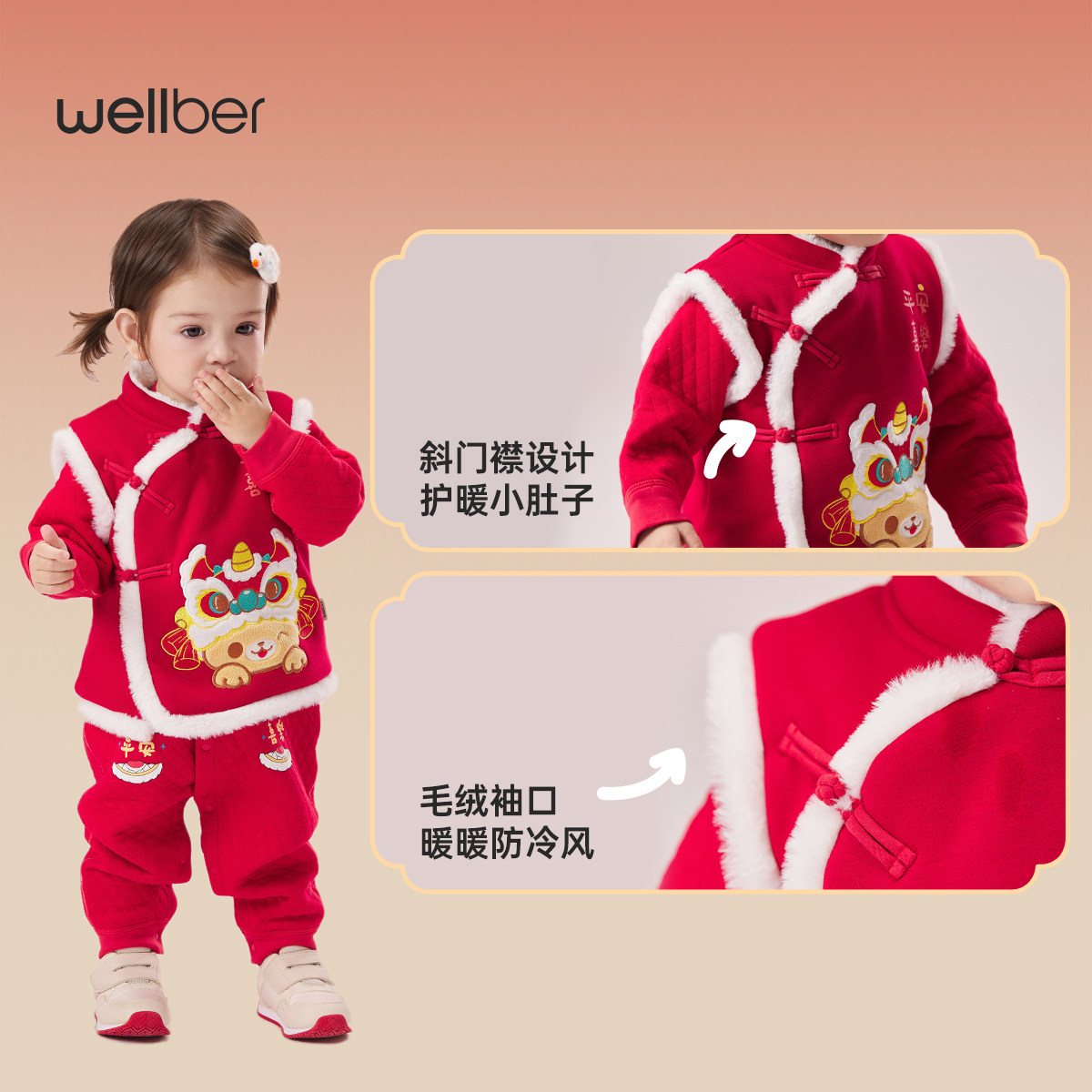 威尔贝鲁儿童外套新年拜年服男女童宝宝夹棉马甲过年服幼儿园元旦 - wellber旗舰店
