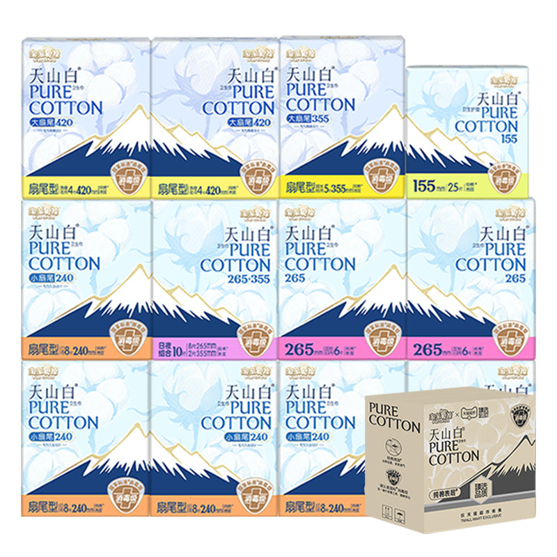 【超市臻选】淘淘氧棉天山白扇尾消毒级纯棉卫生巾日夜用囤货装 - 天猫超市