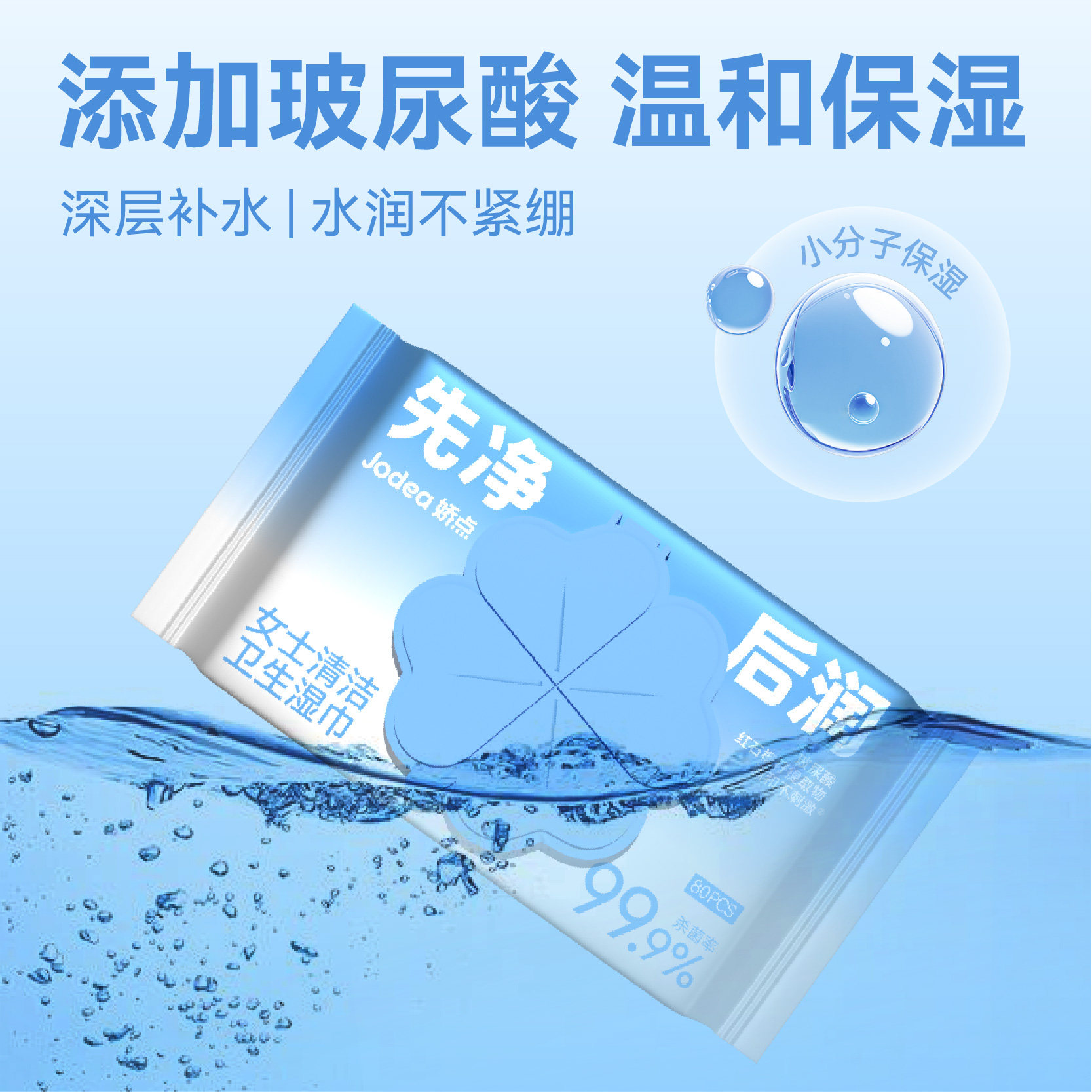娇点玻尿酸护理私密湿巾80抽家庭装事后杀菌清洁男女通用免洗厕纸 - 娇点居家日用旗舰店