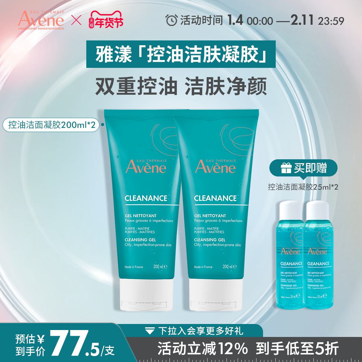 您的位置:优特荟  >   >  【年货节狂欢购】雅漾控油净肤洁面凝胶敏感肌油皮深层清洁洗面奶
