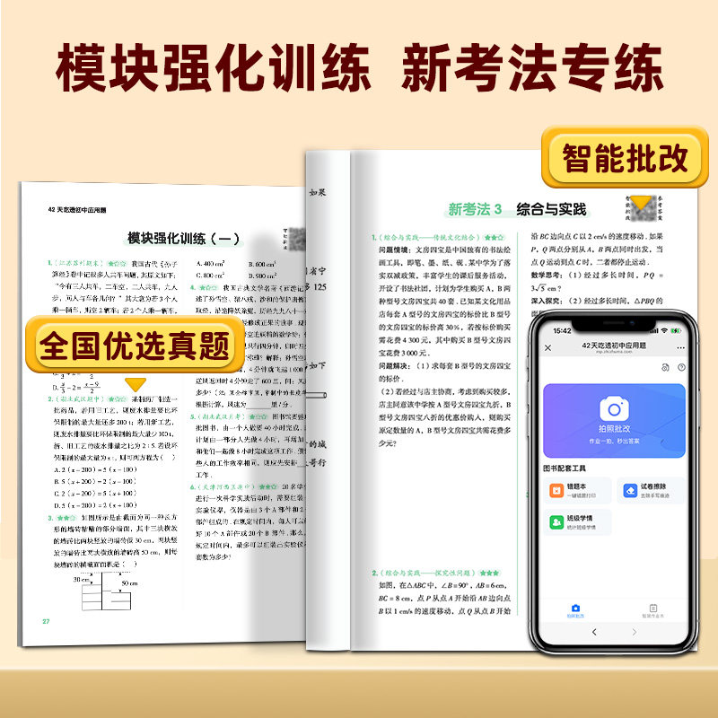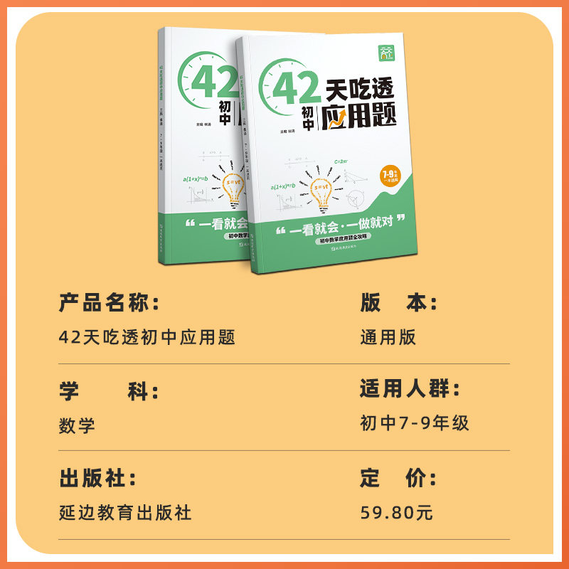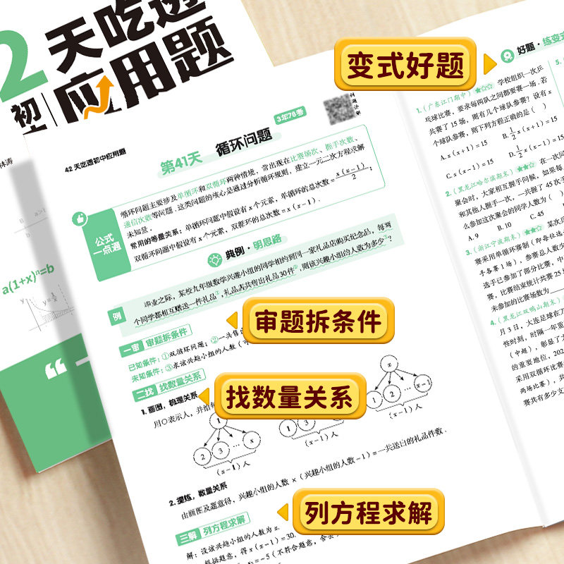 天天向上42天吃透初中数学应用题七八九年级中考玩转几何专项训练必刷题人教版苏教北师通用版下册上册练习题初一初二初三思维训练 - 爱读图书专营店