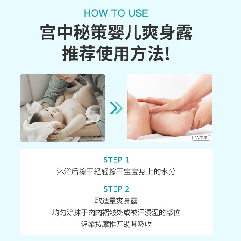 宫中秘策婴儿爽身露新生婴幼儿宝宝儿童专用舒缓保湿爽身水春夏 - 宫中秘策旗舰店